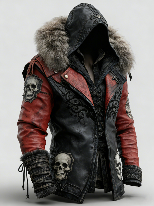 New Autumn/Winter Collection Men's Fashion Gothic Style Color-Blocked Patchwork Leather Jacket 2621