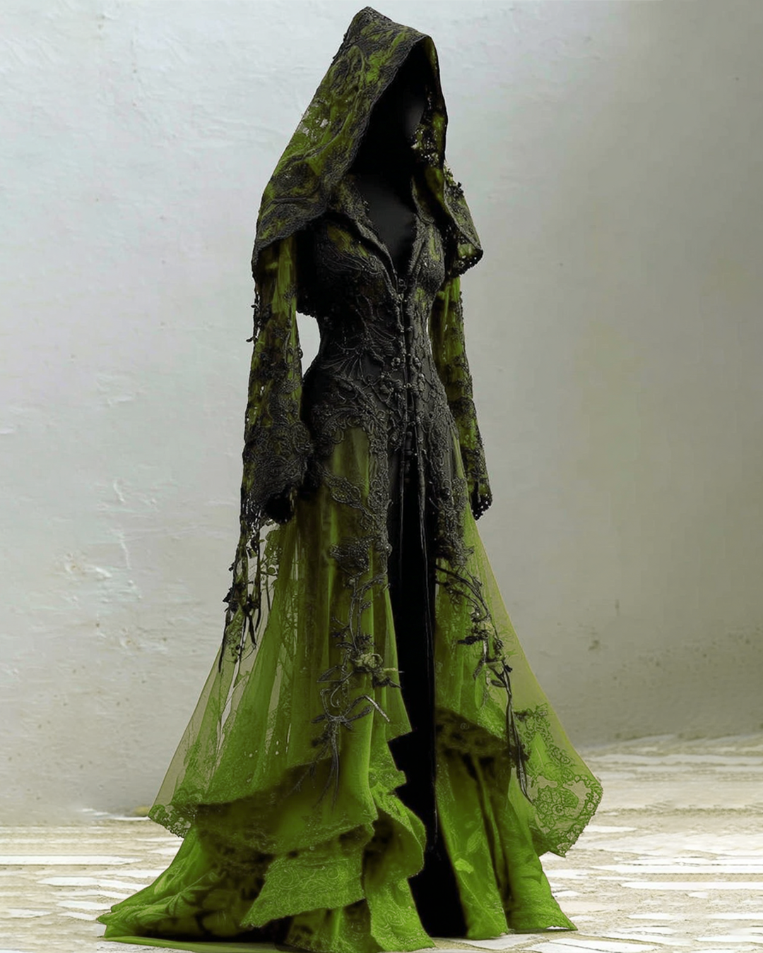 Halloween Themed Gradient Embroidered Lace Dress 7e8d