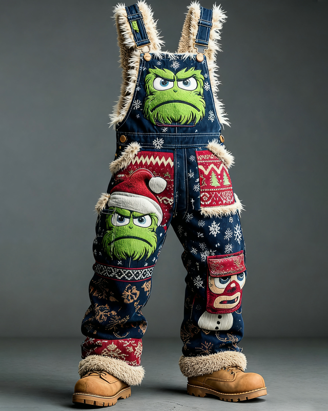 Men's Autumn/Winter Christmas-Themed Embroidered Jumpsuit Overalls 2985