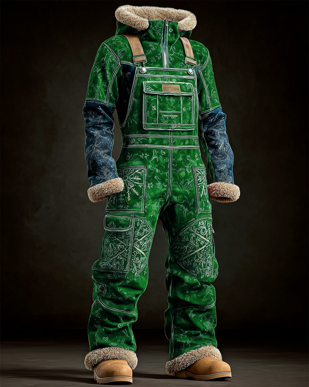 Men's Christmas party snowflake embroidered jumpsuit 9457