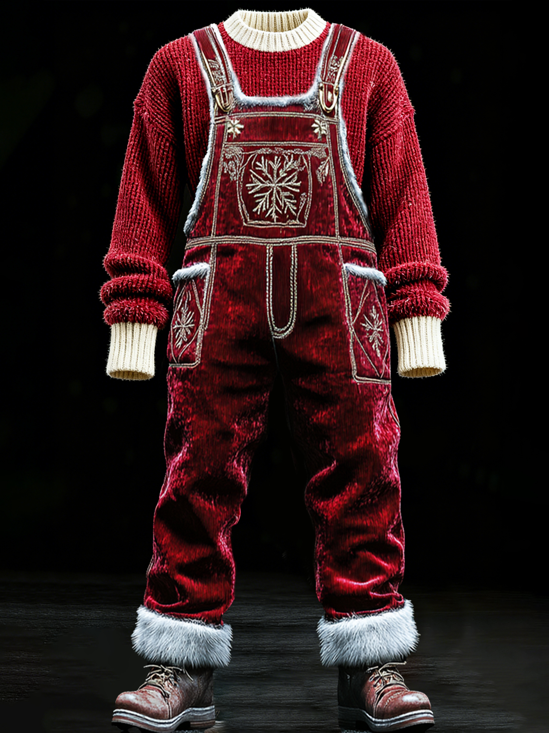 Men's Christmas-themed embroidered Christmas party overalls 6997