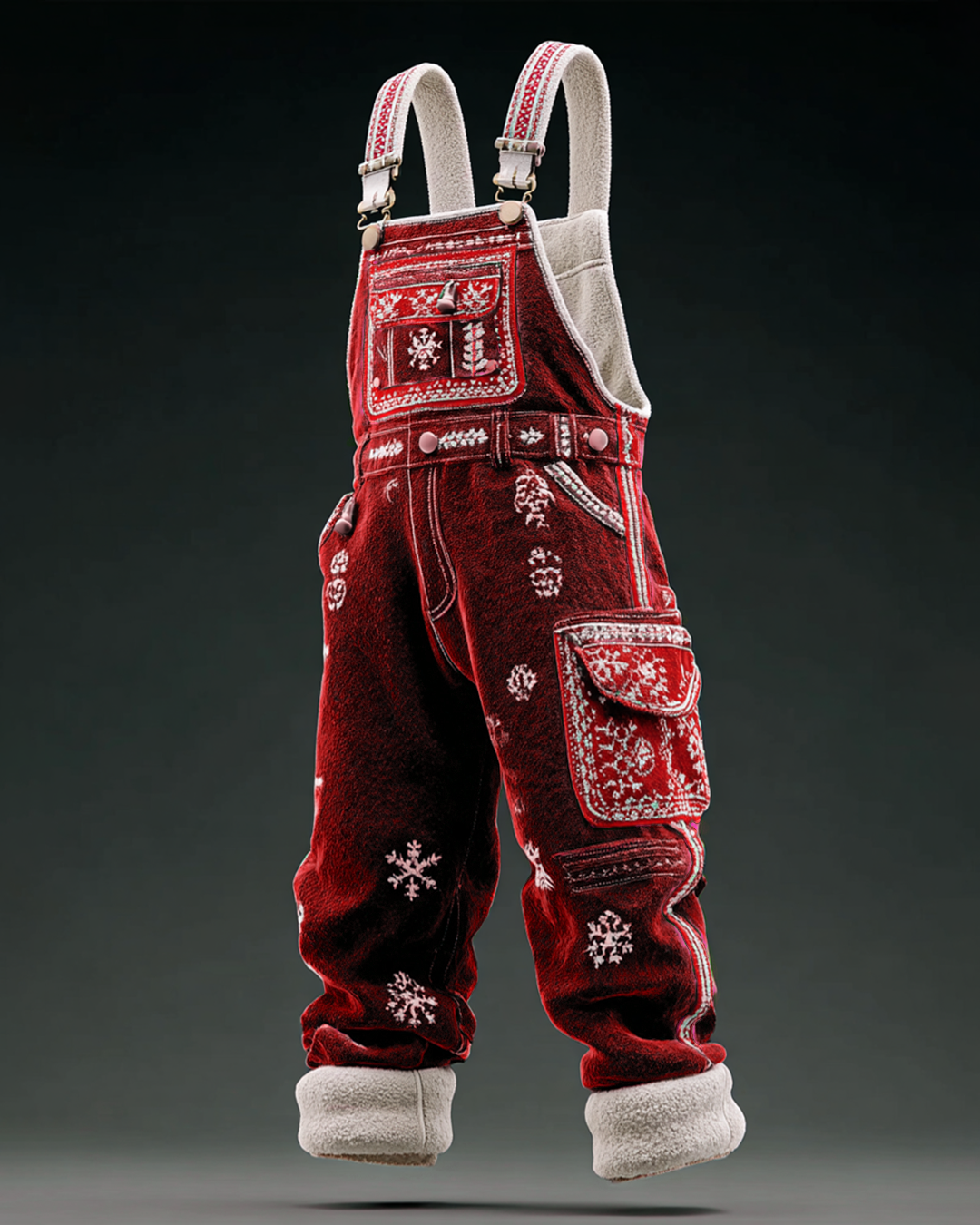 Men's Christmas-Themed Contrast-Color Snowflake Embroidered Velvet Overalls 1063