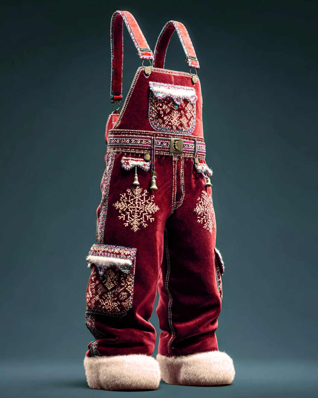 Men's Christmas-Themed Contrast-Color Snowflake Embroidered Velvet Overalls 6038
