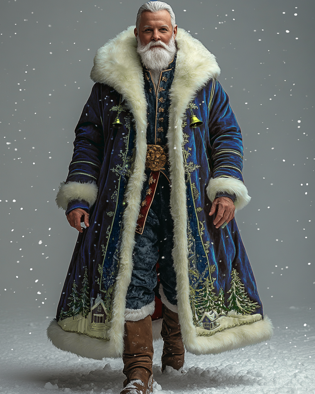 Men's Christmas-Themed Village Embroidered Velvet Coat 6024