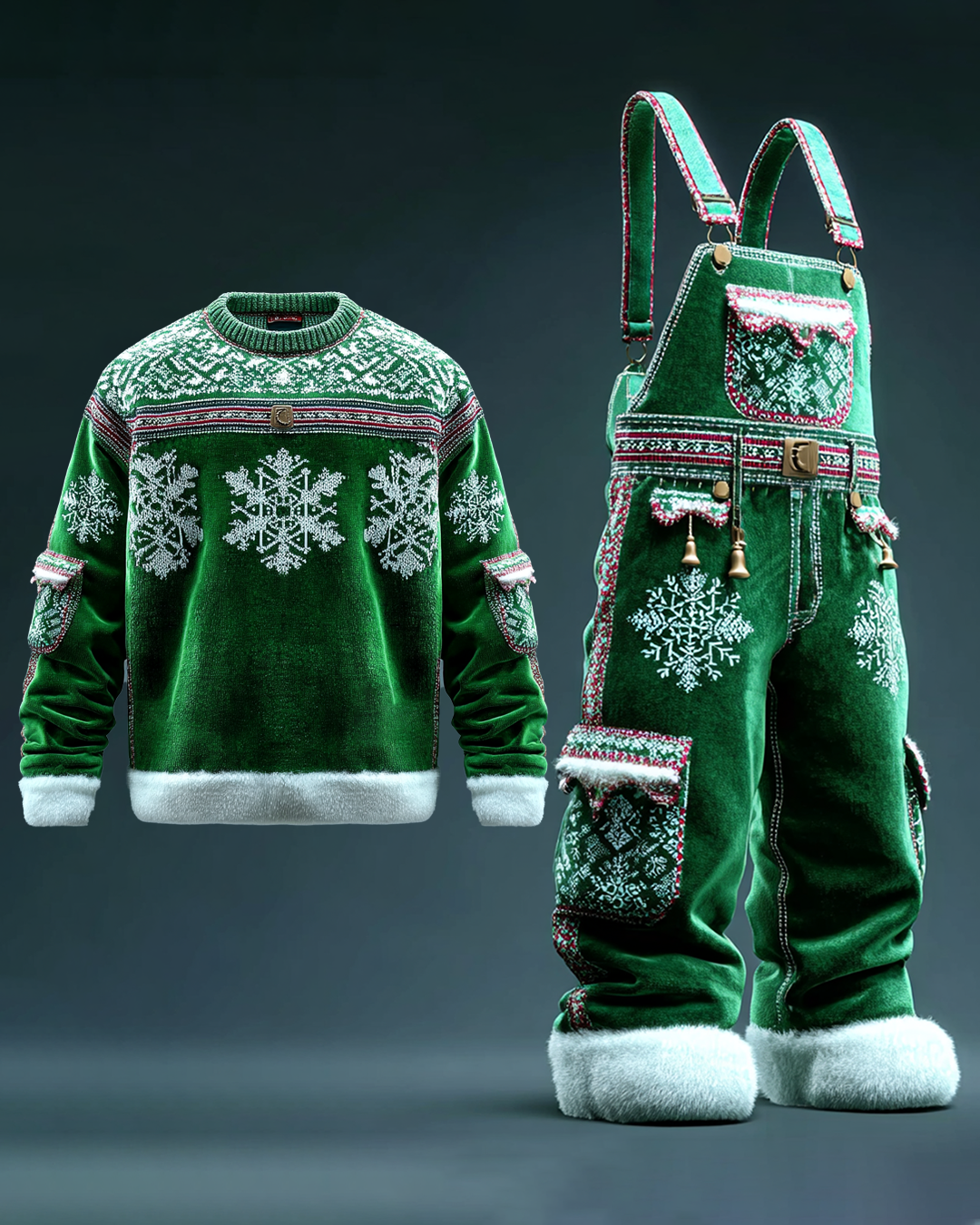 Men's Christmas Themed Snowflake Sweatshirt and Overalls Two-Piece Set 1016