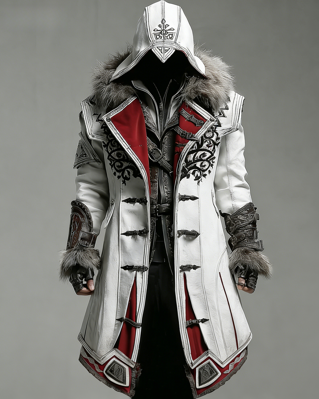 Men's Winter Fashionable Viking Contrast Color Faux Fur Leather Coat 2803