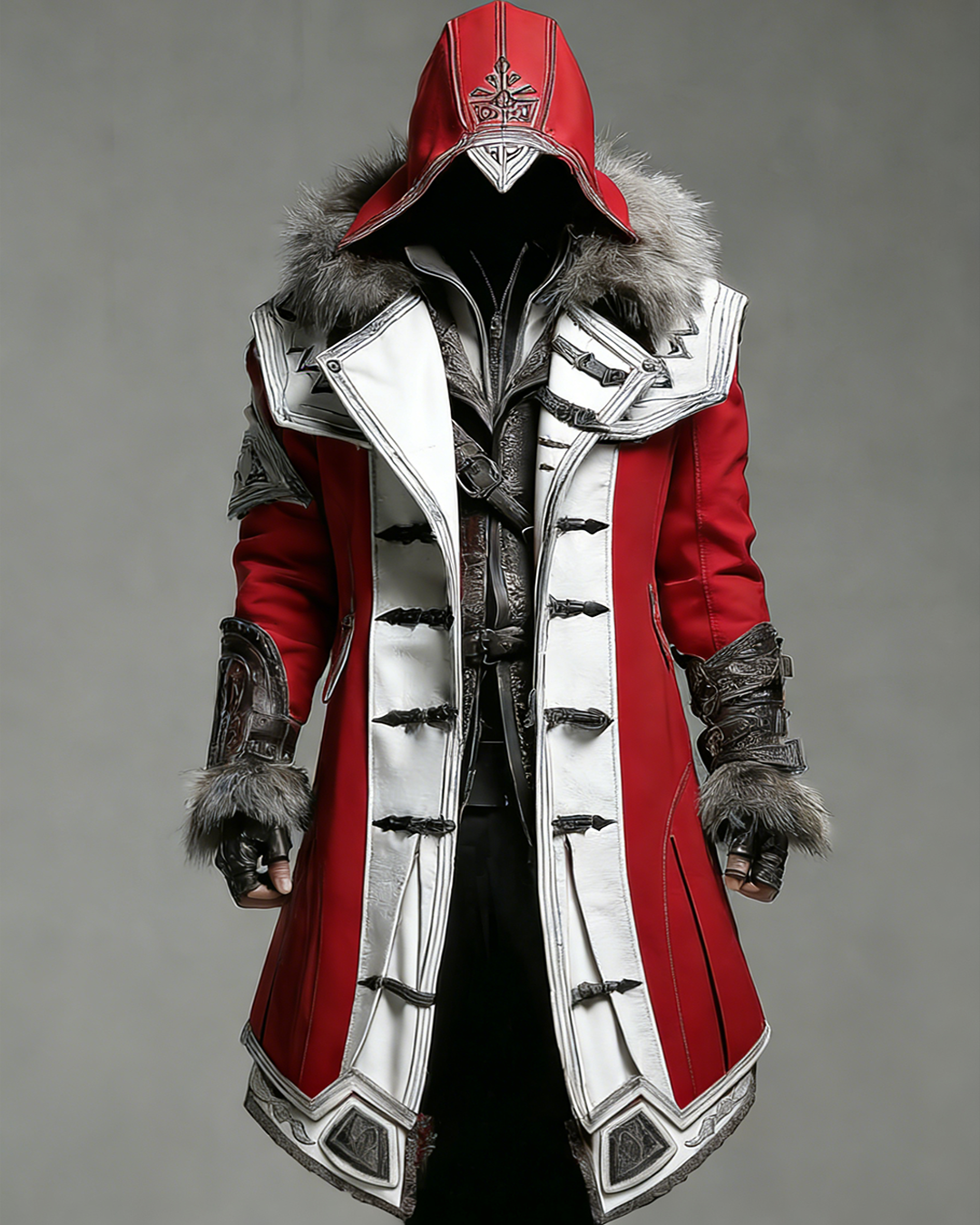 Men's Winter Fashionable Viking Contrast Color Faux Fur Coat 7173