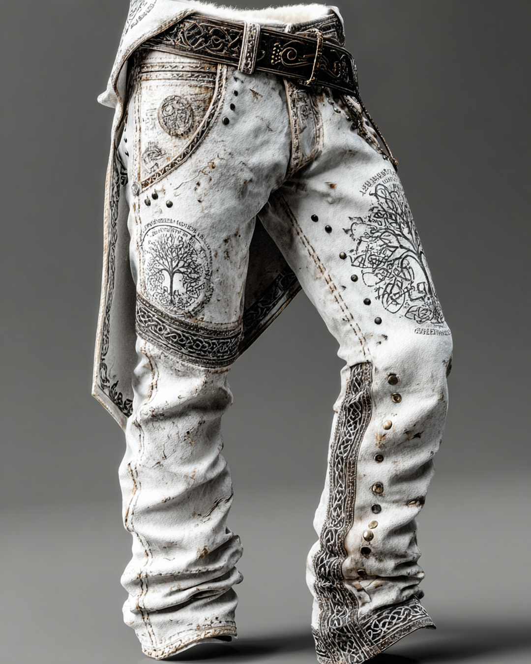 Men's Winter Nordic Viking Style Stylish Warm Leather Pants 1723