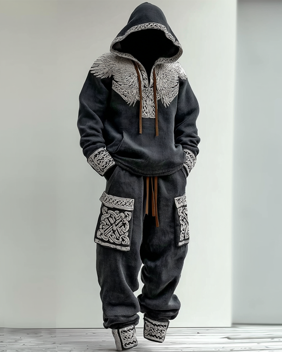 Men's Fashion Viking Linen Hoodie and Pants Two-Piece Set 2951